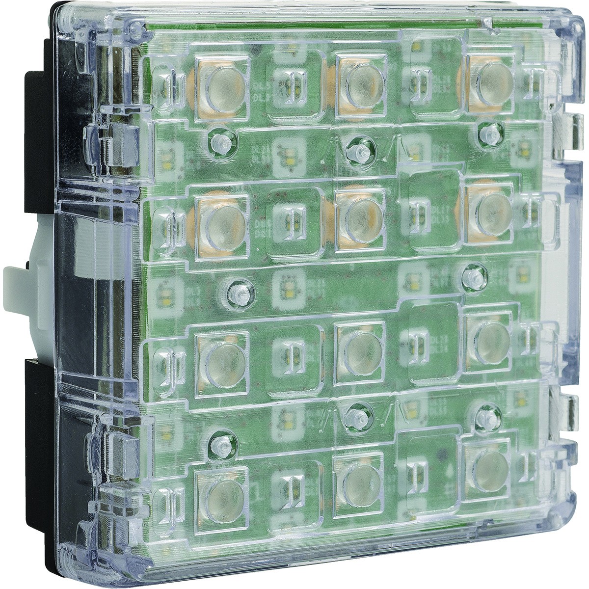 Backlighting is dual-colour (blue or white), with adjustable brightness via the main modules. It’s intended to be paired with the corresponding front panel, which gives IP54 protection for the assembled unit.