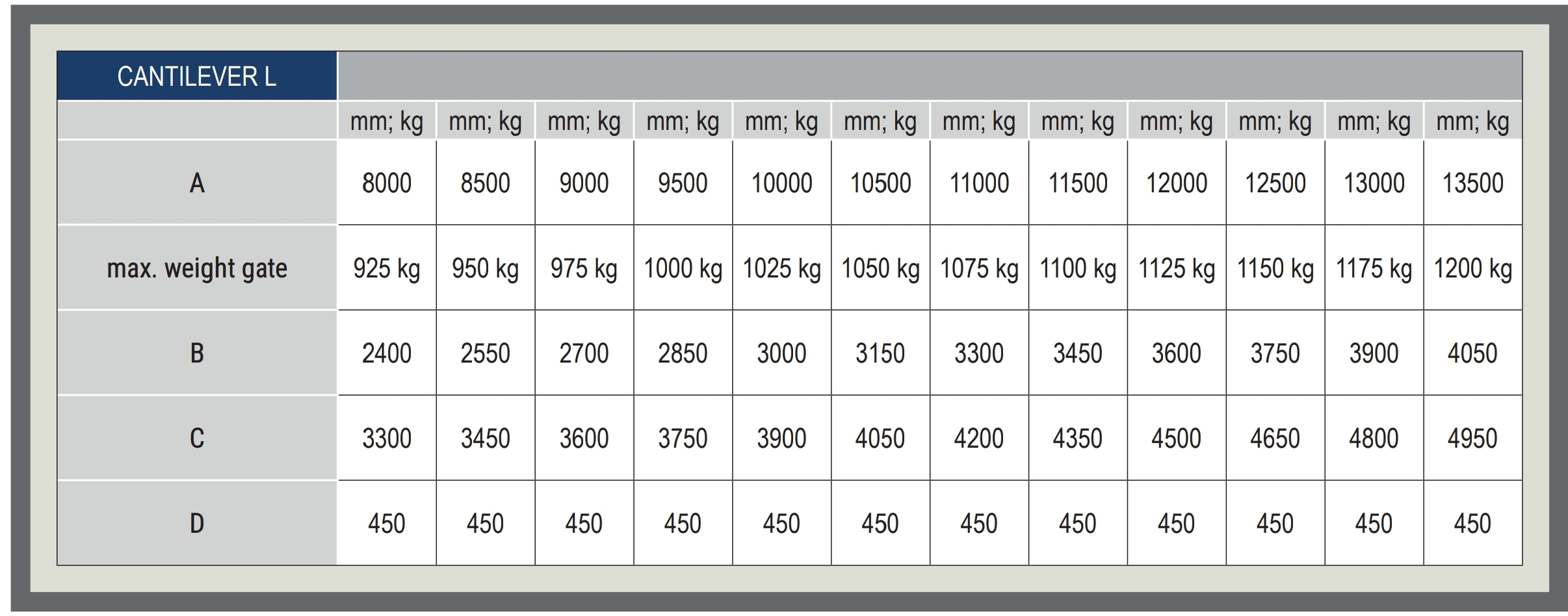 Cantilever Sliding Gate Kit – 13m Opening – Up to 1200kg – L Series (CGK-L-13-1200)