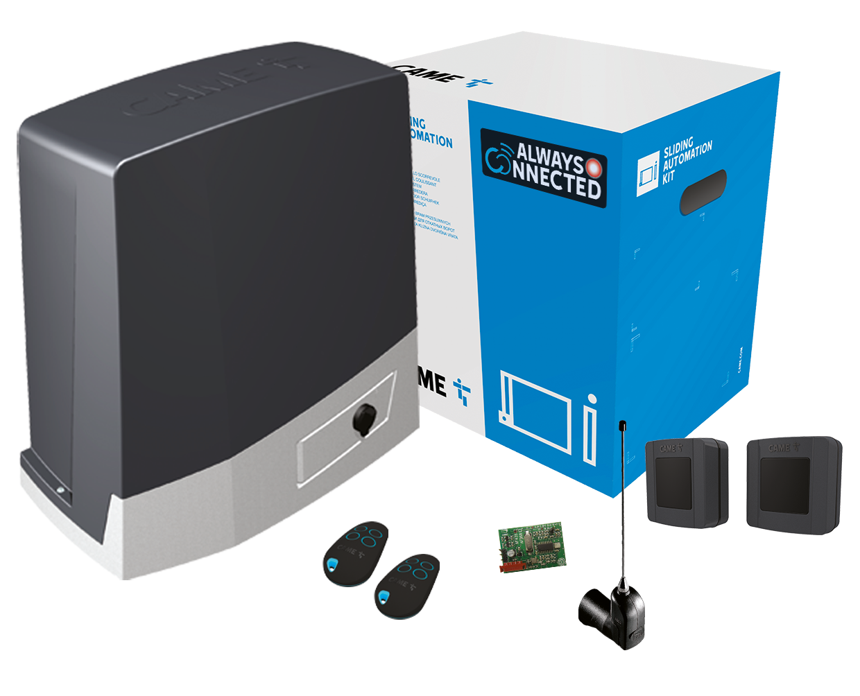 Complete Sliding Gate Kit for Residential and Apartment Block Settings up to a Maximum of 1500kg in weight each leaf. CAME Connect. RIO Connect.