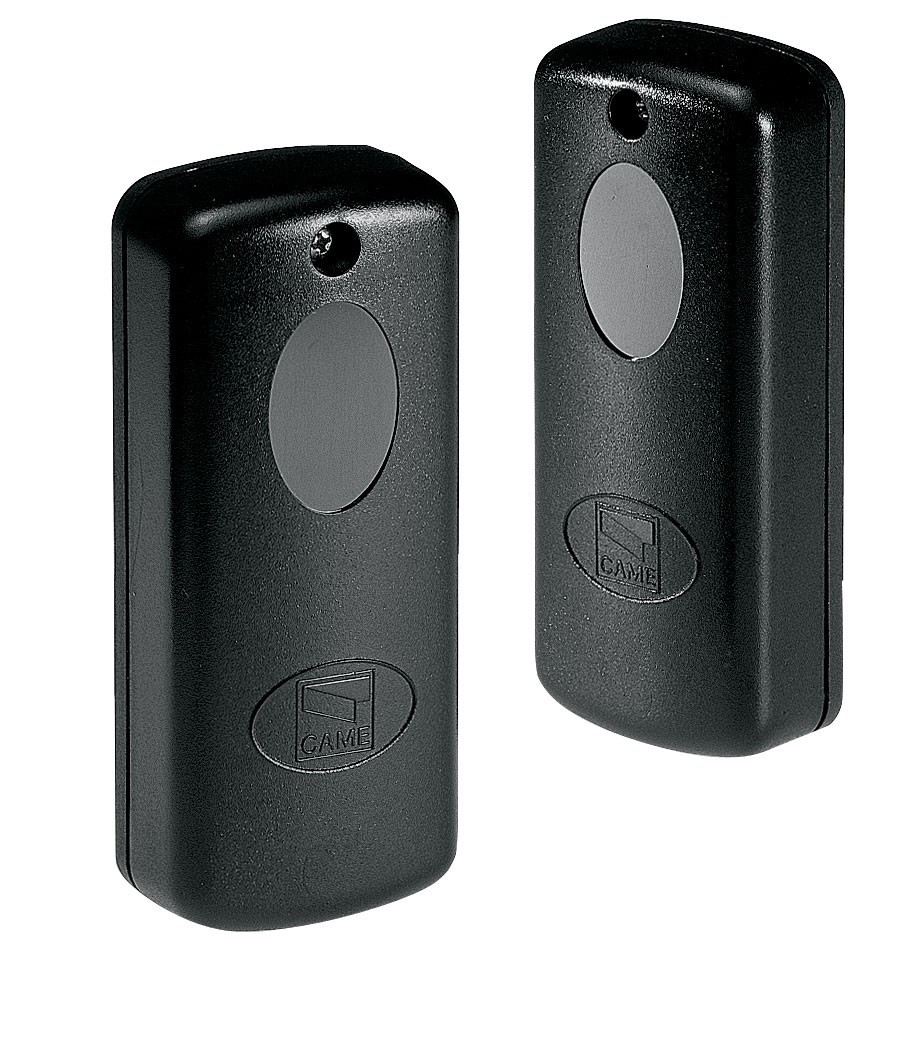 Kits with TOP remotes include compact CAME transmitters with rolling-code radio technology and self-learning from existing TOP, TAM or TWIN handsets, providing straightforward, secure keyfob control. Kits with TTS remotes use a more refined transmitter with a metal-detail front and removable battery compartment, combining rolling-code security with a more premium look and feel.