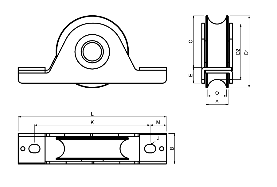 O Groove Wheel with a double bearing on Internal Support allows the wheel to be recessed in the underside of a sliding gate. 118mm Diameter for use with ROAD bolt down ground track. Maximum load 480kg each wheel.